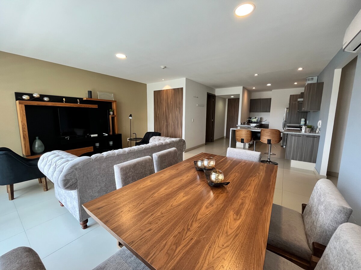 Lujoso departamento en Guadalajara, decorado por el despacho FNisino y con muebles fabricados a la medida por manos tapatías. Hospédate en uno de los edificios más exclusivos y nuevos de Providencia, cerca de la zona financiera, el Bosque Colomos, Punto Sao Paulo y solo a 10 minutos de Andares. Espacio excepcionalmente cómodo, que cuenta con todos los servicios y que te hará pasar una increíble estancia. Cuenta con seguridad 24/7, alberca, gimnasio, coworking y estacionamiento propio.
