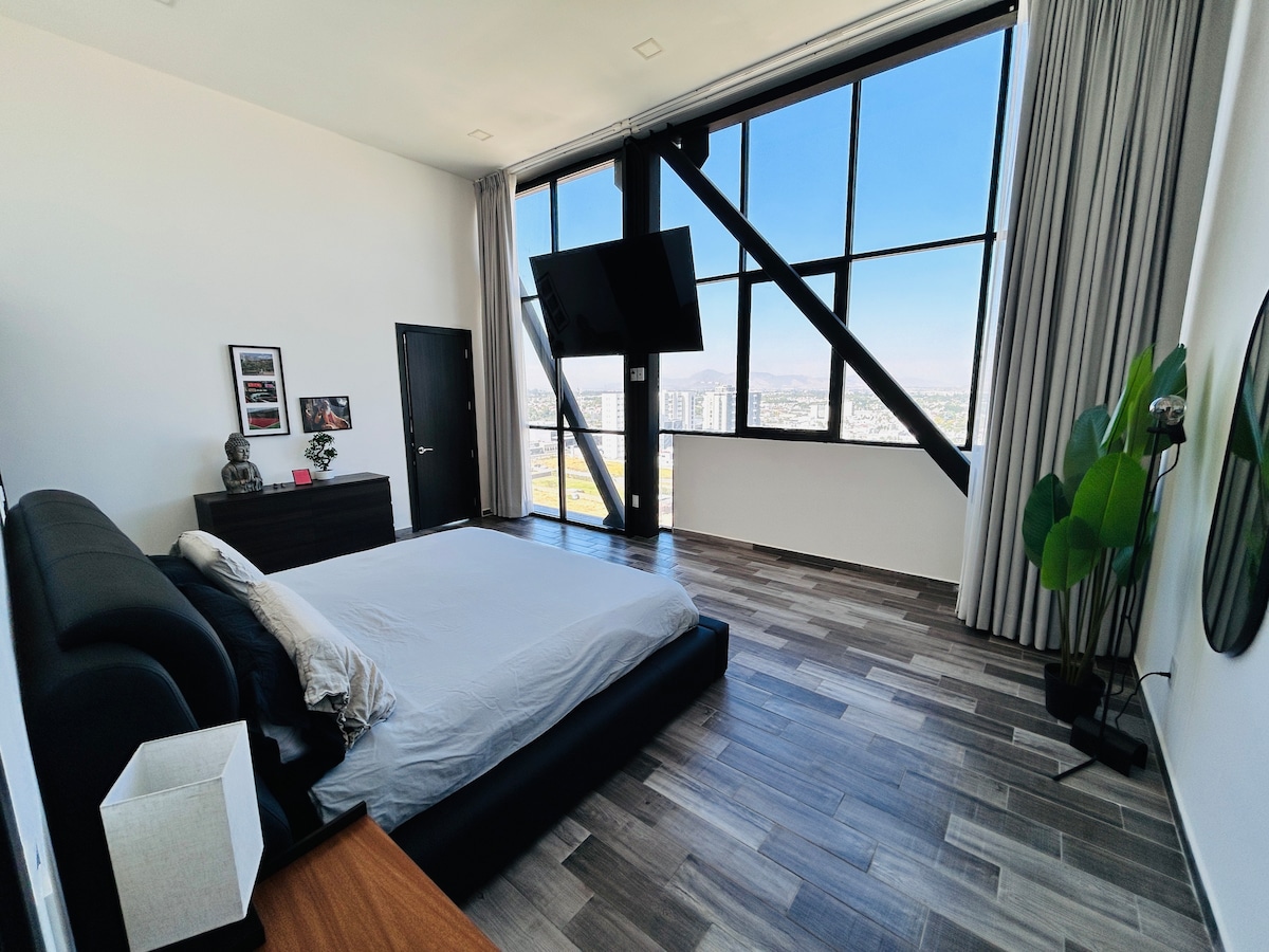 - Piscina al 22° piano - Splendida palestra con vista sulla città - Completamente attrezzato per soggiorni lunghi -Parcheggio disponibile (a un costo aggiuntivo) - Servizio di pulizia: una volta alla settimana per prenotazioni di almeno 7 notti Che tu sia in viaggio per lavoro o per piacere, potrai goderti questo moderno monolocale in una nuovissima torre di lusso nel quartiere di Providencia, vicino al centro commerciale Midtown Jalisco.