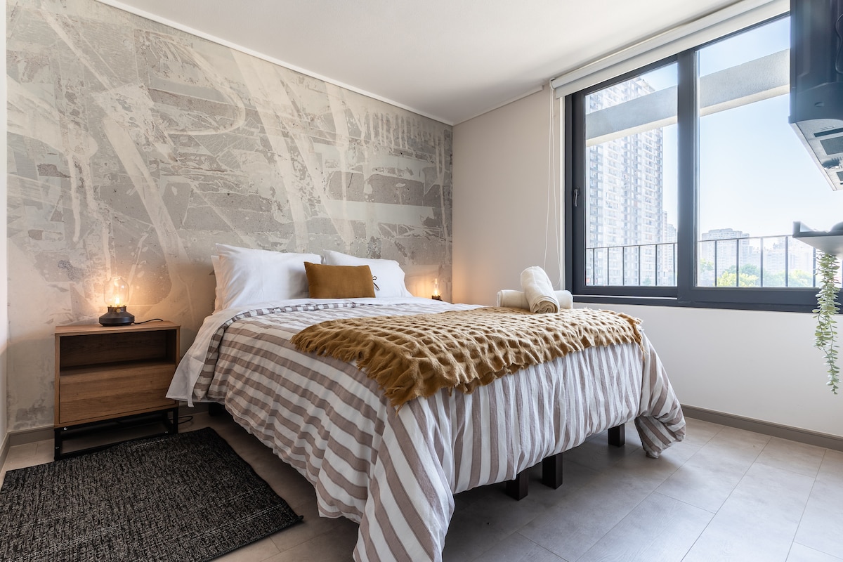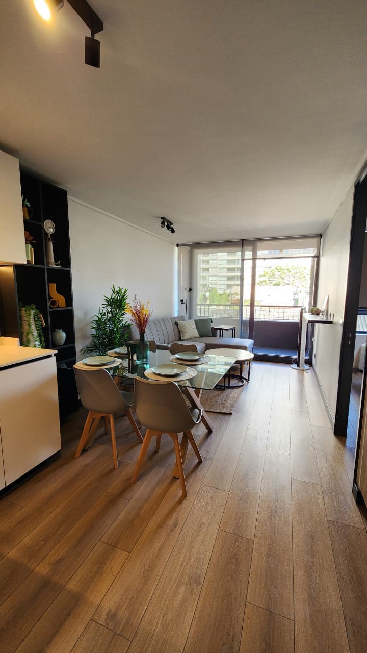 Stylish Nordic-style apartment in the heart of Ñuñoa — perfect for relaxing after exploring Santiago. Located in a safe, quiet, and well-connected neighborhood, just steps from Plaza Ñuñoa, the metro, restaurants, cafés, and shops. Close to the mall and Estadio Nacional. Features AC, washer-dryer, fully equipped kitchen, fast WiFi, and a dedicated workspace. Electronic lock for easy self check-in, 24/7 security, and private parking. Building amenities: gym, pool, and laundry.