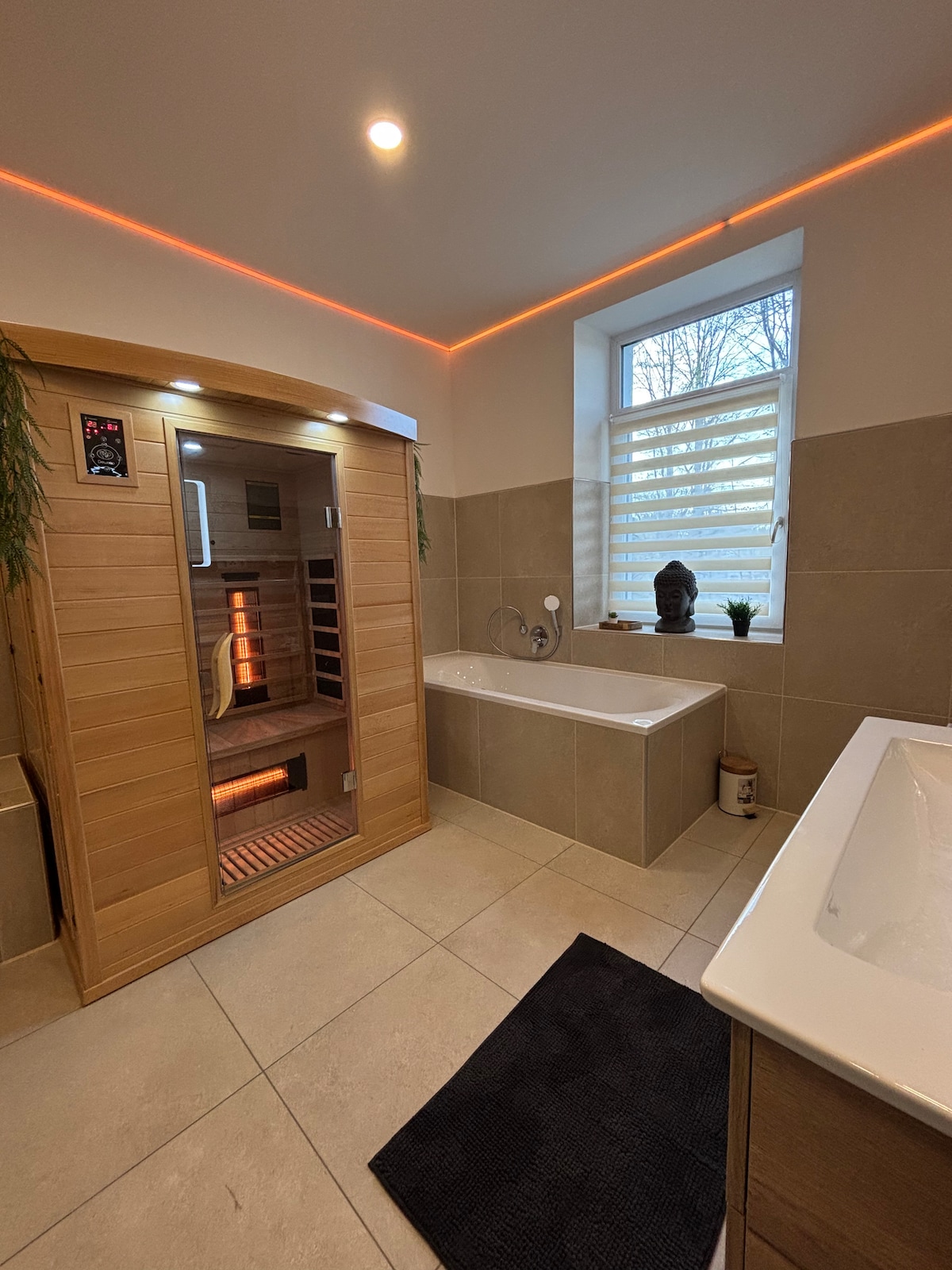 Willkommen in eurem privaten Spa-Retreat in der fränkischen Natur nahe Nürnberg. Das 100 m² Luxus-Hideaway ist ideal für Paare, Freunde und kleine Familien, die eine entspannte Auszeit suchen. Genießt den Outdoor-Whirlpool und die finnische Sauna auf der Terrasse mit Schlossblick sowie Infrarot-Sauna und Kamin im Innenbereich – alles exklusiv nur für euch. Separater Eingang, volle Privatsphäre und nachhaltige Beheizung mit Restholz aus unserer Zimmerei.