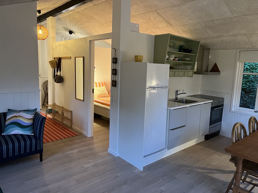 Rilassati in questa casa unica e tranquilla con vista sul fiordo di Vejle, sui campi e sui boschi. La casa è dotata di soggiorno con cucina, zona pranzo e zona divano, servizi igienici con doccia e al piano superiore con camera da letto. Ci sono due letti a soppalco (matrimoniale) e un letto singolo a pavimento. Tieni presente che le scale che portano al 1 ° piano sono un po' ripide e non c'è molto spazio intorno al letto matrimoniale. All'esterno ci sono due terrazze, entrambe con vista. C'è una cucina a legna con legna a disposizione gratuitamente. Sia la biancheria da letto che gli asciugamani sono inclusi.