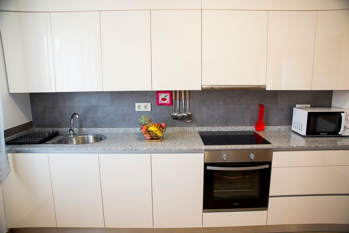 El piso tiene: • 1 habitación con cama de 135 cm • Un baño completo dentro de la habitación • Salón-comedor • Pequrña cocina equipada Ideal para una pareja pero hay sofá cama y cosaa de bebé. El apartamento está en el casco urbano, en una zona tranquila. Todo está cerca andando: calle principal, puerto, paseo marítimo. Hay toallas, sábanas, mantas, ventilador, radiador, secador, plancha, cafetera, botiquín, extintor, utensilios de cocina, aceite, café, sal, agua, gel, papel higiénico...