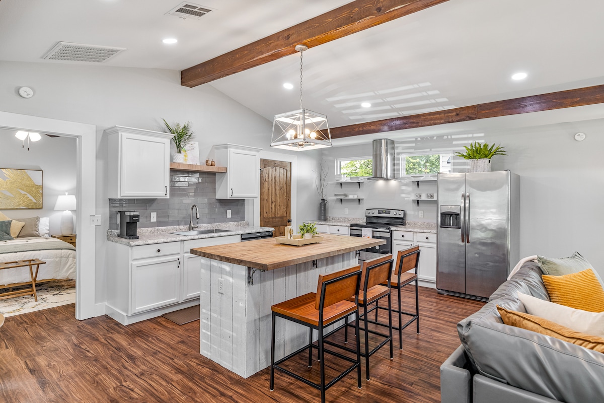 Troverai tutti i comfort di casa nella piccola casa di Granny. Una cucina completa per preparare i pasti, se lo desideri, e un comodo divano per rilassarti e leggere un libro o sederti e guardare la TV. L'aria condizionata è piacevole e fredda e il letto matrimoniale è molto comodo. Un bagno spazioso per fare una doccia o un lungo bagno. Facilmente accessibile e a soli 2 minuti dall'interstatale. Landry's Vinyard, Antique Ally, Duck Commander Tour e diversi ristoranti e negozi sono a soli 5-15 minuti di distanza. Una macchina da caffè americano e tè.