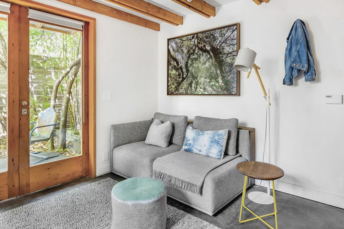 Sorseggia un caffè nel tranquillo cortile ricoperto di viti di questo cottage appartato, situato sul retro di una proprietà d'epoca a Berkeley. Lenzuola bianche, mobili artigianali e rivestimenti in legno dipinto creano un rifugio sofisticato ma rustico. La camera principale è accogliente, con un grande lucernario, un comodo letto matrimoniale, una sedia girevole, una scrivania e una sedia. È presente un piccolo angolo cottura. All'esterno troverai un patio in pietra, una panca a dondolo che si affaccia su un laghetto koi e un tavolino con sedie. ZCSTR2021-0842
