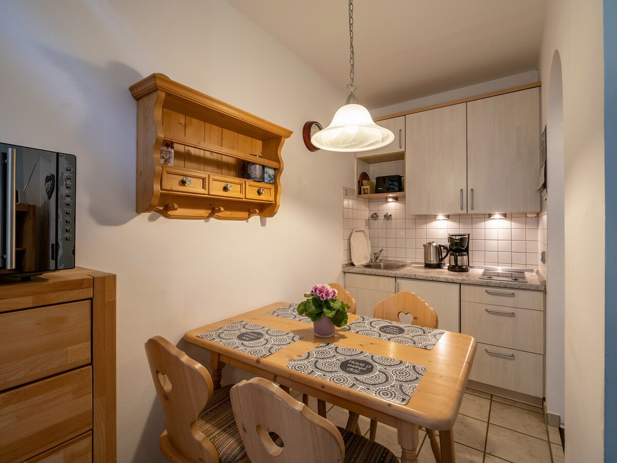 Accogliente appartamento di circa 63 m² in posizione tranquilla, composto da 2 camere da letto, cucina abitabile, soggiorno con divano letto e accesso alla grande terrazza sud-est e al giardino. L'appartamento è stato completamente ristrutturato nell'estate 2018, in gran parte arredato a nuovo ed è progettato per un massimo di 4 persone. L'appartamento offre una posizione tranquilla ma centrale, quindi le destinazioni più importanti sono raggiungibili a piedi. L'appartamento è un punto di partenza economico per iniziare escursioni e gite in montagna