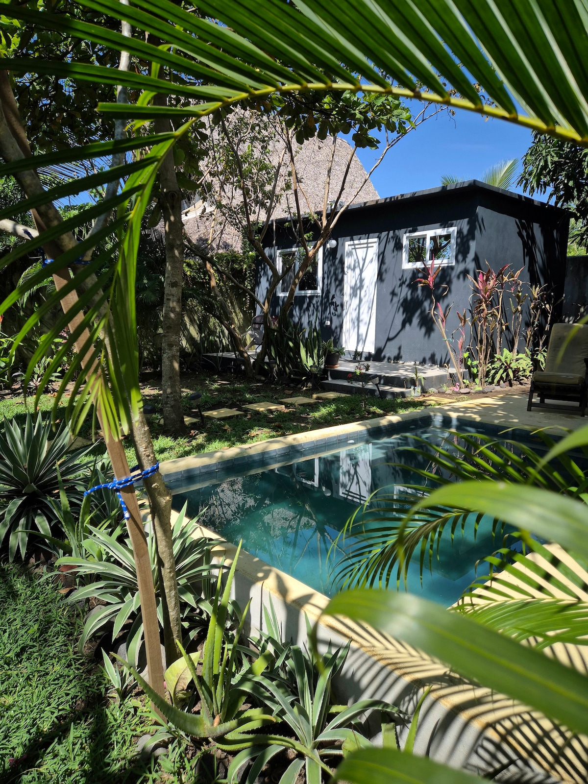 Vieni a rilassarti e goditi la nostra graziosa casita con lussureggiante giardino privato e patio esterno ai Bonsai Bungalows. Abbiamo progettato e realizzato a mano gran parte della nostra casa, dagli arredi agli arredi e con tutto il necessario per la perfetta vacanza rilassante in spiaggia. La casa comprende una cucina ben attrezzata, zona pranzo, letto matrimoniale grande, bagno e aria condizionata. Goditi il tuo giardino tropicale privato recintato con amaca e area relax.