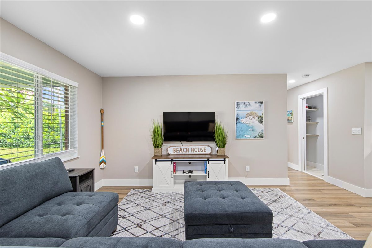 Welcome to The Palm — a fire pit oasis near Jensen Beach. Unwind in the private backyard, relax in the screened patio with smart TV and hanging chairs, or cook in the fully stocked modern kitchen. Just minutes from Jensen Beach, Stuart Beach, and historic downtown Stuart, this home is perfect for families, couples, and remote workers. Enjoy fast Wi-Fi, memory-foam beds, and kid-friendly extras like a pack & play and changing station.