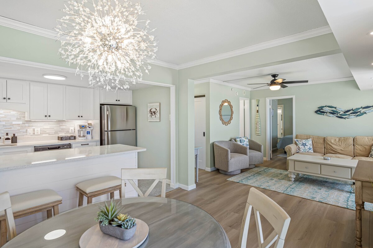 Appartamento appena ristrutturato!! - Vista sull'acqua. Osserva il traffico delle barche. - Balcone sovradimensionato con comodi posti a sedere. - Comodo divano LoveSac. - Passeggiata sul lungomare o sulla spiaggia: 15 minuti. - Passeggiata al parco divertimenti Jolly Roger. -Fish off community dock down below unit. - Vicino a ristoranti e negozi. - Angolo cottura per cucinare i pasti. - Wifi veloce e TV in streaming. - Casa completamente rifornita. Pulisci biancheria da letto, asciugamani, carta igienica e altro ancora!