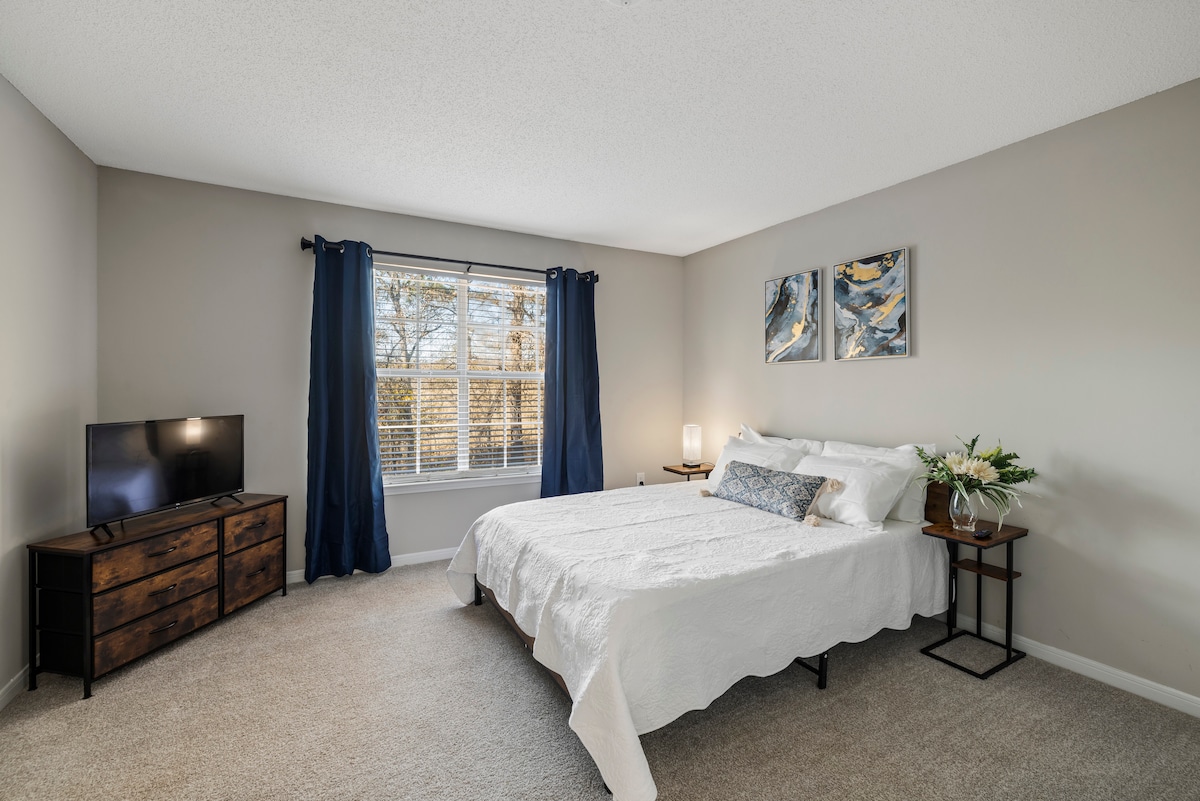 Spazioso appartamento con 2 camere da letto e 2 bagni a pochi passi dal centro storico di Athens, dal campus dell'Università della Georgia e dal Sanford Stadium, da ristoranti e da molto altro! Wifi gratuito, elettrodomestici in acciaio inossidabile, TV HD, cucina completamente attrezzata (pentole e padelle, utensili da cucina, ecc.), camino elettrico, patio esterno con posti a sedere. Il piano terra offre un facile accesso per bambini e anziani. Può ospitare comodamente 6 persone (1 letto king-size, 1 letto queen-size e divano letto matrimoniale con letto estraibile). Piscina aperta stagionalmente.