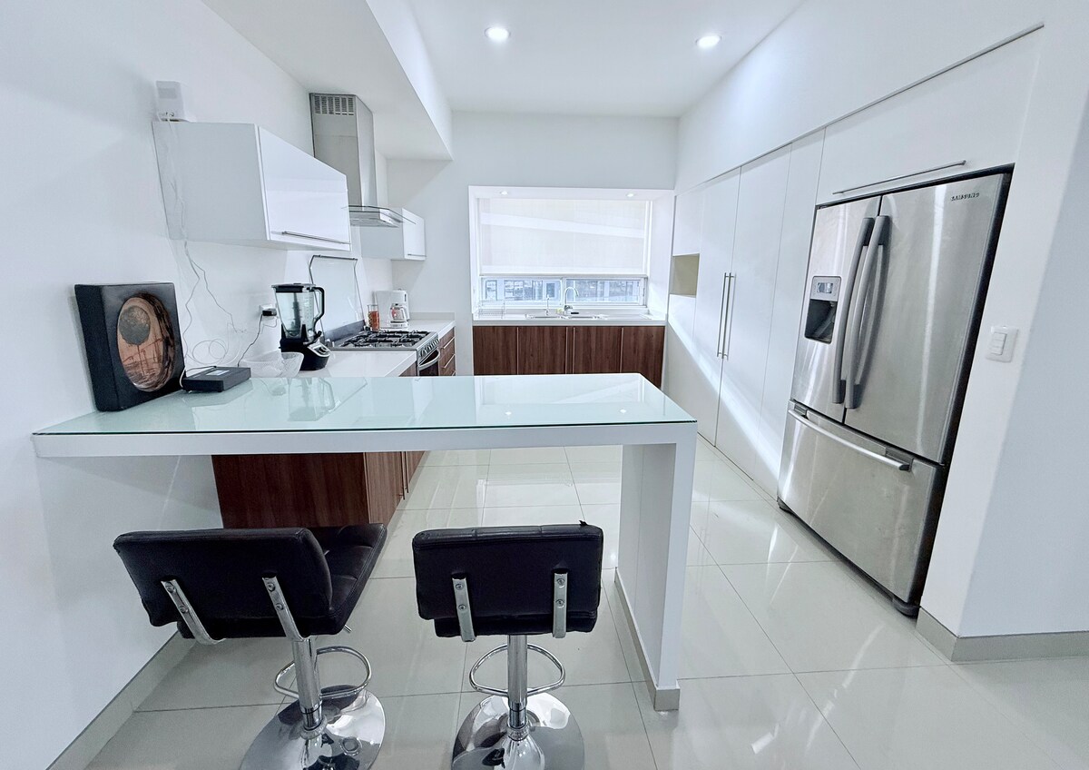 Situato in una delle zone residenziali più emblematiche di Puebla, ha accesso a piedi a Sonata, patio, palestra, coworking, sala giochi e piscina olimpionica. Le nostre camere sono state dotate di materassi e lenzuola che rafforzeranno il tuo riposo. La nostra sala dispone di TV 65', tavolo per 6 e cucina attrezzata con tutto il necessario per rendere il tuo soggiorno indimenticabile. Abbiamo un parcheggio con accesso all'ascensore. Ti stiamo aspettando!