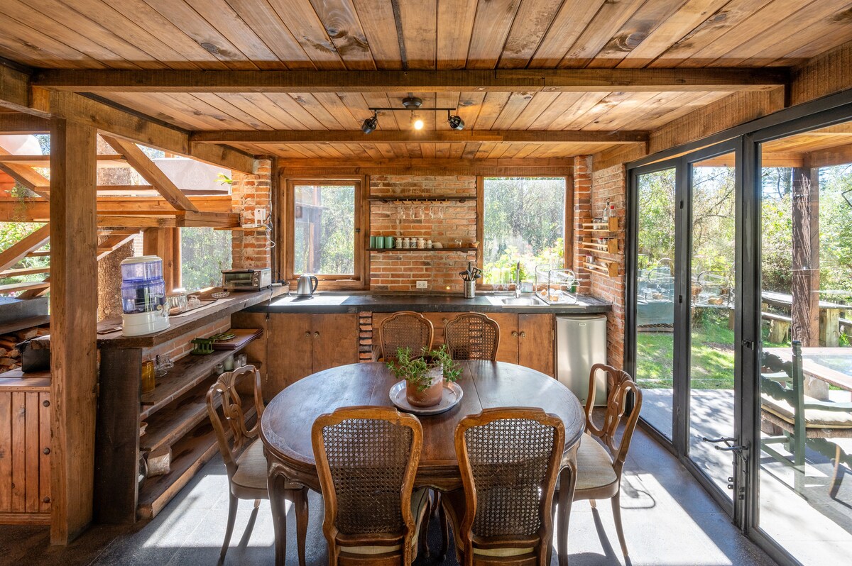 Casa di campagna in una zona tranquilla di Malinalco. 1.350 M2. Soggiorno-sala da pranzo circondato da vetro con vista sui giardini in tutte le direzioni. Ampia cucina al centro e grandi verande. Due camere da letto con bagno completo. Bagni per gli ospiti. Due camere da letto in una "Casa dello Hobbit" con bei disegni. Due TV e un proiettore con TV satellitare e streaming. WiFi. Area giochi, dondolo, amache, studio e punti panoramici. Un grande prugno e altri alberi. Piante e fiori. Parcheggio per 4 auto.