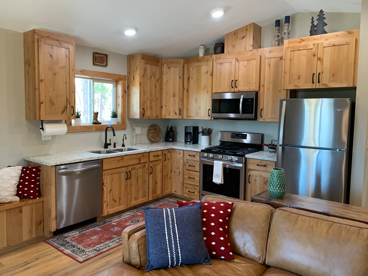 Steven ha preso la sua baita A-frame grezza e l'ha rimodellata nello spazio unico che The Shard è oggi. Ha avuto una visione di comfort moderno unita al fascino rustico che è così tipico di La Pine! All'aperto troverai un ettaro di paesaggio naturale circondato da pini, da ammirare dalla terrazza. Inoltre, sono stati aggiunti un parcheggio in pietra e una recinzione per garantire la privacy!