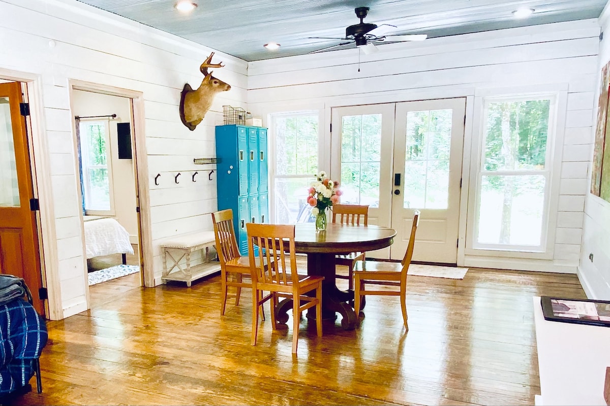 Sentiti come a casa in questa casa appartata e privata con un portico posteriore schermato che si affaccia su uno stagno. Porta con te i tuoi amici a quattro zampe e goditi l'ambiente tranquillo. Vai alla partita, fai il tifo per i Dawgs e poi torna a casa in un posto tranquillo dove puoi grigliare, sederti sul portico o trascorrere del tempo con familiari, amici e animali domestici.