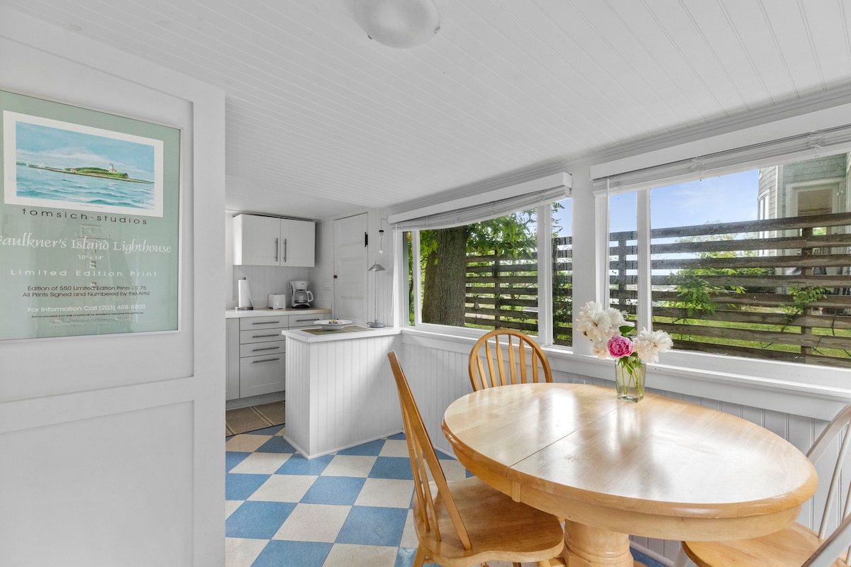 Ti diamo il benvenuto al "Belle Vue Cottage". Questo cottage affascinante e invitante si trova in un quartiere tranquillo e silenzioso nella zona di South Cove di Old Saybrook. Trascorri le tue giornate rilassandoti ad Harvey's Beach, esplorando i negozi e i ristoranti lungo Main Street, assistendo a uno spettacolo al The Kate e rilassandoti a fine giornata nella tua oasi in giardino, dotata di TV all'aperto e focolare. Siamo a meno di 2 km dal Saybrook Point Inn and Spa e a 10 minuti dal Water's Edge Resort and Spa.