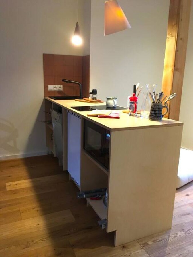 Appartamento di circa 40 metri quadrati, pulito e luminoso con angolo cottura, zona giorno e zona notte separata. Bagno molto bello e luminoso con doccia e servizi igienici e sauna integrata per 2 persone (Klafs). Ideale per rilassarsi dopo le passeggiate nella stagione fredda. L'appartamento è ubicato al 3° piano e ha un proprio ingresso separato. I padroni di casa vivono nella stessa casa. L'appartamento dispone di un parcheggio chiuso. Le biciclette possono essere tranquillamente parcheggiate nel cortile. Ambiente alla moda.