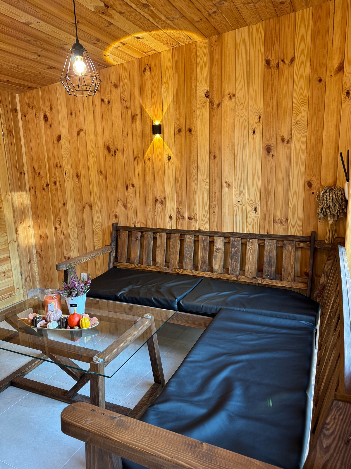 Szarejkowe Wzgórza casetta con banya sulla terrazza