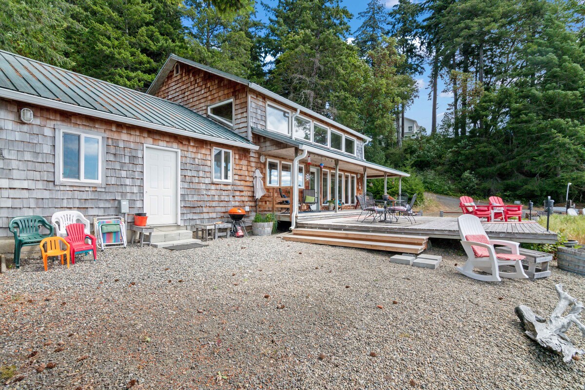 Casa sul lungomare in stile chalet con pianta aperta. Situato direttamente (pesca dal ponte con l'alta marea) sulla splendida baia di Skookum, sullo stretto di Puget. Il tuo soggiorno a "Kravitz-Port" ti offre una vista sul mare di un allevamento di ostriche del nord-ovest. L'insenatura è un rifugio per foche, aquile, lontre, ecc. Tutti possono essere avvistati nel loro habitat naturale mentre ti siedi sul ponte con una vista panoramica a 90 gradi sul lungomare. Goditi la serenità da qualsiasi punto in cui ti riposi a Kravitz-Port, all'interno o all'esterno della casa.