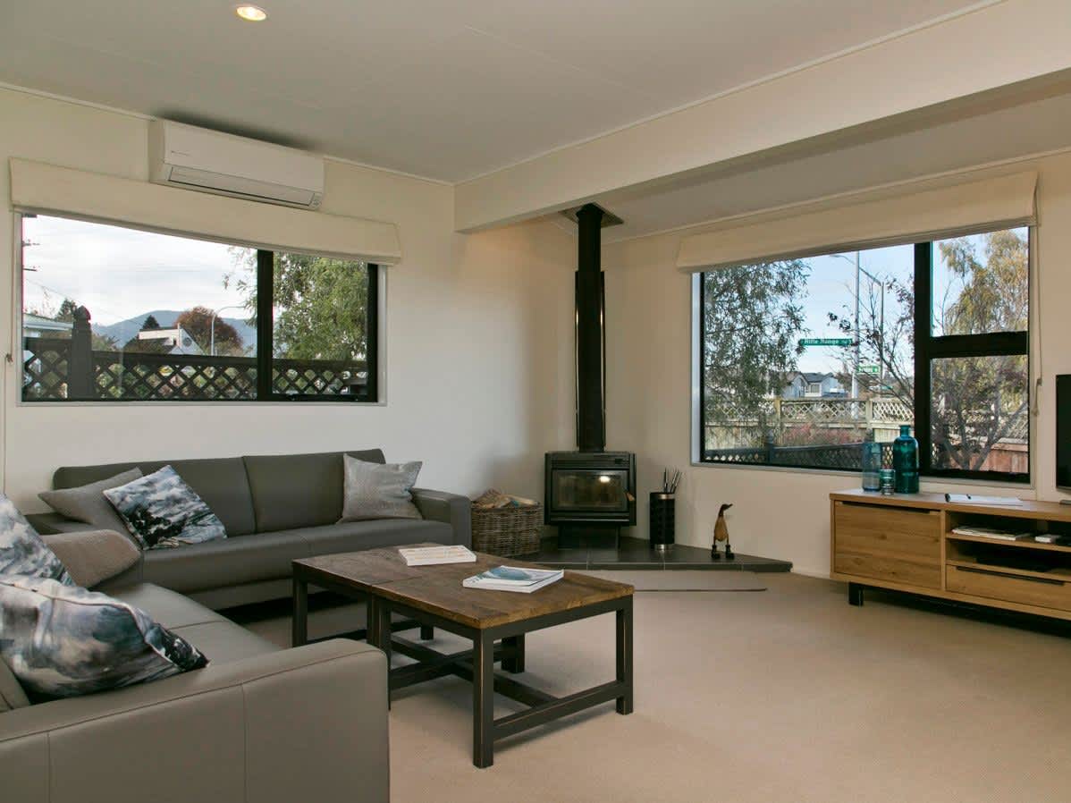 Located in a quiet grove, our home has a modern open plan living area which flows out to a large outdoor living area, featuring a private back yard with all day sun. Within walking distance there is a large lakefront reserve, cafe, tennis courts, kids playground and bush walks to explore. The supermarket is a 15 minute drive, general store 3 minute drive and 2 boat ramps just a minute away. Perfect base for Whakapapa ski field, Tongariro crossing and various mountain biking or walking tracks.