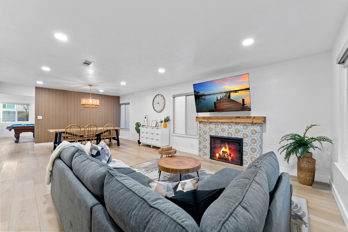 ~NO parties or events ~modern newly renovated single story home ~near ontario airport, haven city market, ontario mills, victoria gardens, toyota arena, ontario convention center, disneyland, kaiser. ~smart tv, board games, arcade, pool table ~bedrooms: blackout blinds & memory foam mattresses ~stocked kitchen: spices, coffee station, drinking water filter ~backyard: outdoor dining, corn holes, artificial grass, string lights ~washer & dryer ~dedicated workspace ~2 garage 2 driveway parking