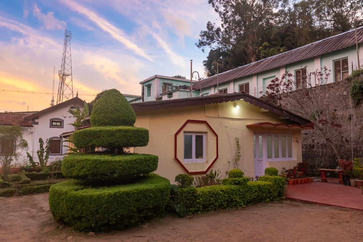 Un cottage privato del 1986, reinventato come un rifugio ricco di personalità e comfort essenziali. Essendo l'unica casa sulla sua strada, offre vera tranquillità a soli 3 km da Charring Cross, con colonna sonora di soli uccelli e brezza. Il suo prato privato di 2500 piedi quadrati è il tuo posto in prima fila per lo spettacolo del cielo: albe nebbiose che si sciolgono in pomeriggi luminosi e tramonti infuocati. Le serate sono ideali per accendere falò scoppiettanti, guardando le stelle sorgere sopra le luci scintillanti di Ooty sottostante. WFH pronto con 100 Mbps e backup 2kVA 24x7.