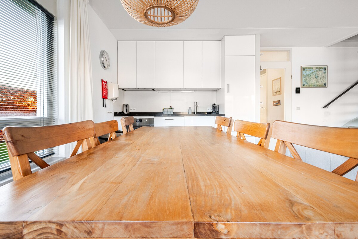 Nel villaggio di sport acquatici di Terherne, sul lago Sneekermeer. Il parco avventura Kameleon, caffè, ristoranti e la più bella chiesa/location per matrimoni della Frisia sono dietro l'angolo. Si dorme al piano terra (2 camere da letto + bagno privato + cucina privata + ampio soggiorno privato (50 m2) con soffitti alti e camino. Ingresso indipendente. La terza camera da letto si trova al piano superiore, accessibile dalla parte anteriore della casa. All'esterno, sul bordo dell'acqua, la tua terrazza privata. Adatto anche per lavori di gruppo con un grande tavolo da lavoro. Vintage quindi bello, vecchio e accogliente. Ma non immacolato.