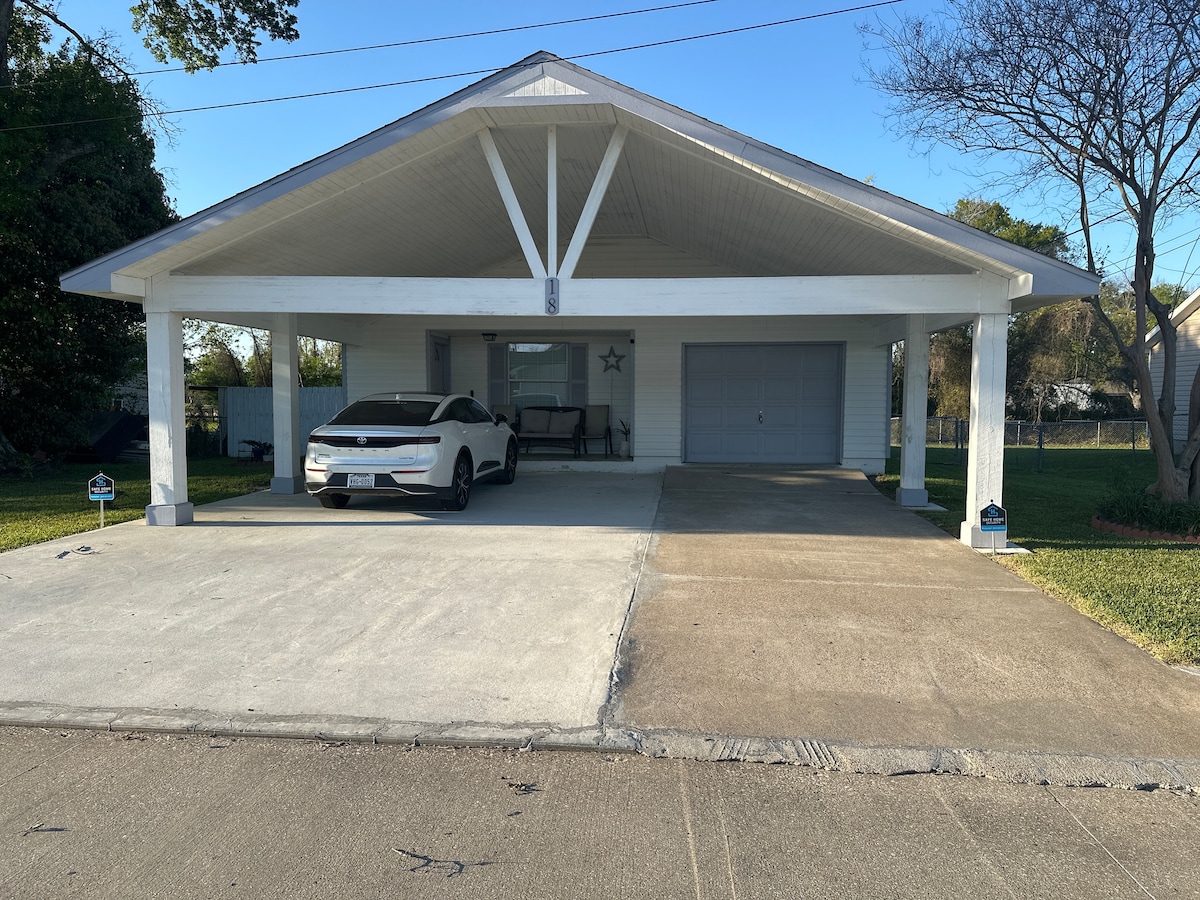 Vieni a soggiornare nella nostra accogliente casa con 3 camere da letto e 2 bagni! Si tratta di una planimetria suddivisa con la suite padronale a sinistra e gli alloggi per gli ospiti a destra. La zona giorno e la cucina sono al centro. Il soggiorno dispone anche di una TV da 65 pollici. La casa ha un portico anteriore e uno posteriore che si possono apprezzare al mattino o alla sera. C'è una griglia a carbone sul portico posteriore che gli ospiti possono utilizzare. La casa dispone di un ENORME vialetto. Siamo a pochi minuti dal Rainbow Bridge e a circa 20 minuti da Beaumont.