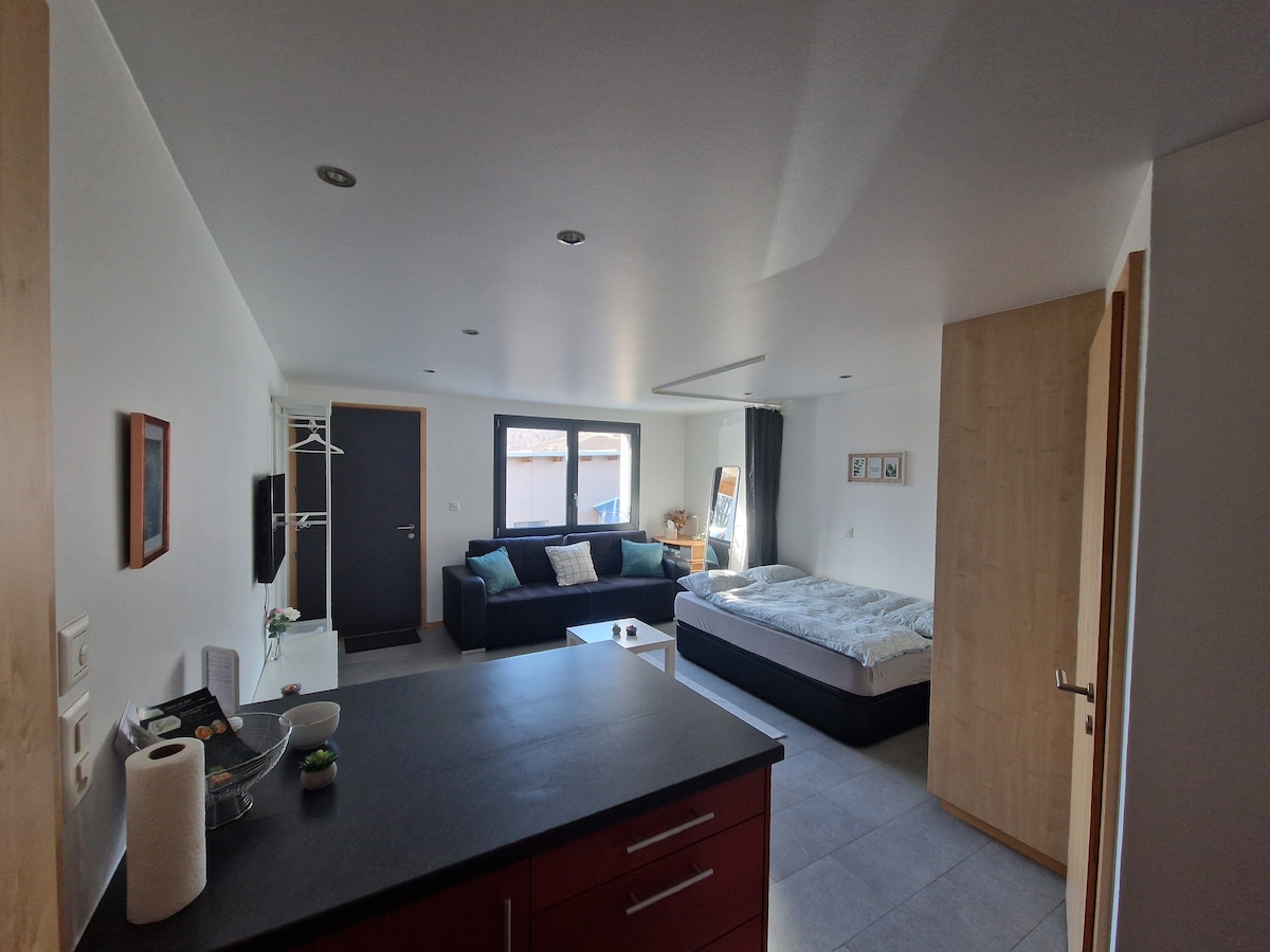Situé à 5 min de Sion en voiture, un studio meublé avec deux lits simples peuvent être rapprochés ( Ikea lit-canapé de 2/80/200), cuisine, salle de bain et chauffage au sol, une petite terrasse vous permet de bien profiter du soleil et barbecue, une vue au sud sans vis-a vis, un parking privé est juste devant la maison, Le Wi-Fi mobile est fournit, une station d'essence et un magasin DENNER en deux pas, la ligne de 351 /353 vous amène jusqu'à la gare de sion, soyez les bienvenus !