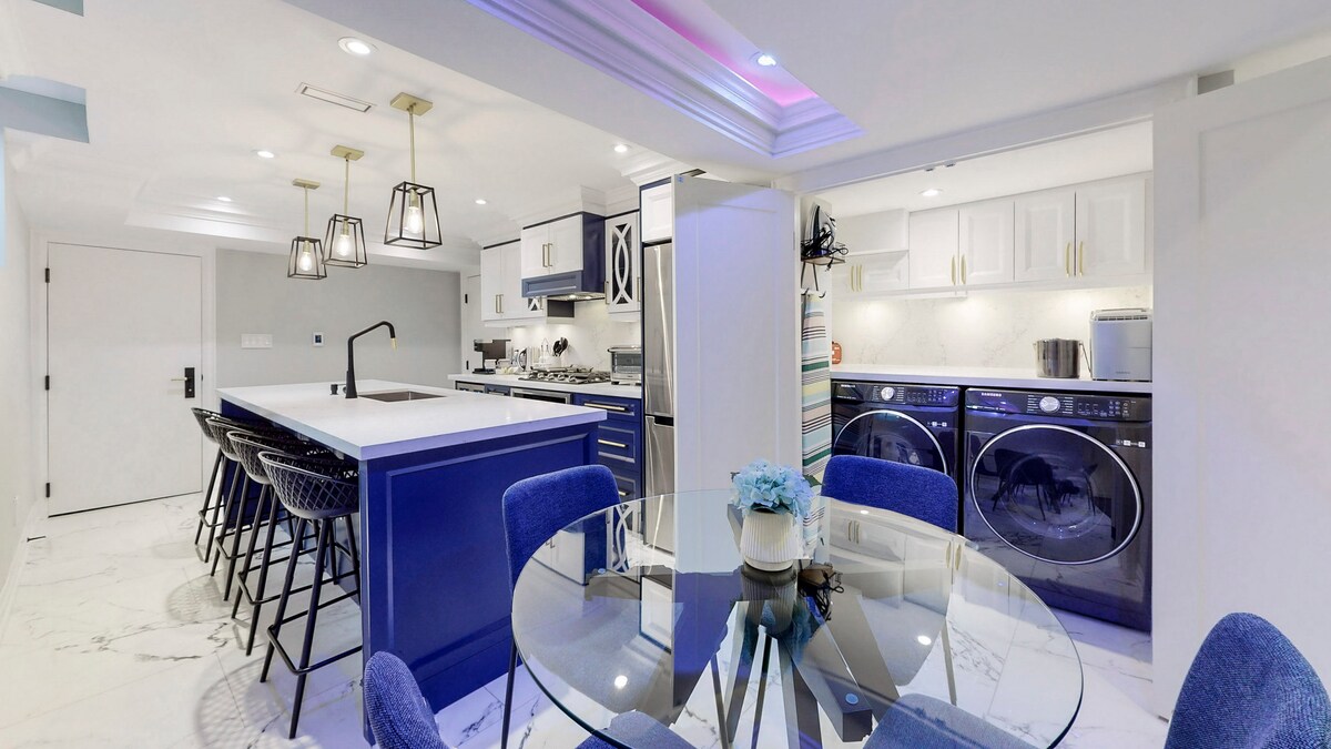 ★ "Appartamento molto bella! Pulito, spazioso e moderno" ★ Unità ☞ completamente privata!!! ☞ Cucina completamente attrezzata!!!! Con tutte le macchine e le pentole necessarie ☞ Extended Kitchen Island ☞ Tutte le stanze con letto queen + lenzuola e piumino !!!!! TV Samsung intelligente da☞ 55"con Netflix + soundbar Samsung con Sub ☞ Central AC + Riscaldamento Lavatrice e asciugatrice☞ in loco. ☞ Parcheggio → 1 sul vialetto!!!! ☞ 700mbps wifi ☞ Open Concept 5 minuti → a Thermëa spa 12 minuti da → Whitby e Ajax GO Station