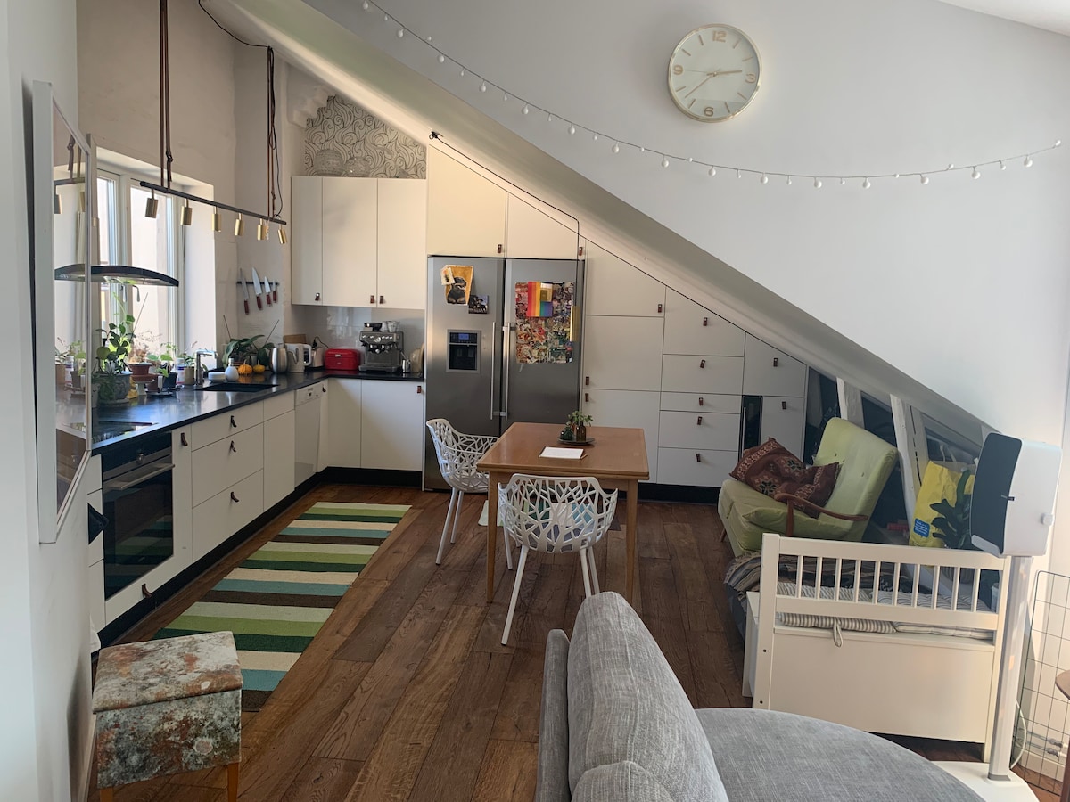 Bright attic apartment in the absolute centre of Old Town Stockholm. Interior combining 400 year old woodwork with modern design. Neighbors around the corner include Royal Castle, Nobel museum and plenty of extraordinary restaurants and bars. This is were you absolutely get the most out of your stay in Stockholm. Well suited for families, business trips or an exclusive stay by yourself!