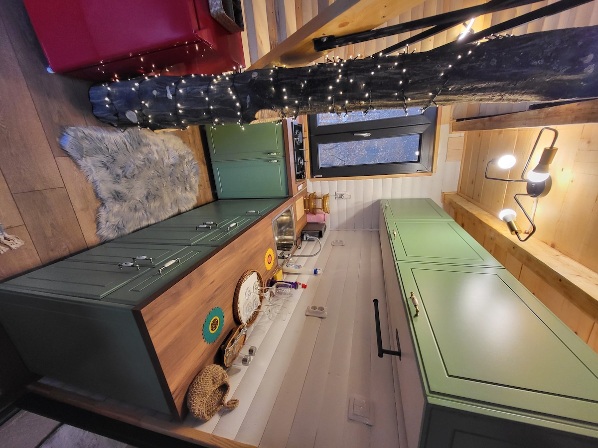 Disconnettiti dal mondo e dai rumori di fondo in un luogo ricco di storia, colori e natura. La casa in stile AFrame sarà tutta tua, il cortile e il frutteto di 3000 m ² solo il tuo e a volte puoi condividerli con i cervi. La casa ha un salone aperto di 50mq, una camera da letto al piano superiore, bagno con acqua calda, cucina completamente attrezzata e generose superfici vetrate per vedere il cielo di notte. Se vuoi ancora la tecnologia, avrai aria condizionata con intelligenza artificiale, SmartTV, Wifi in/out Starlink, XBox...