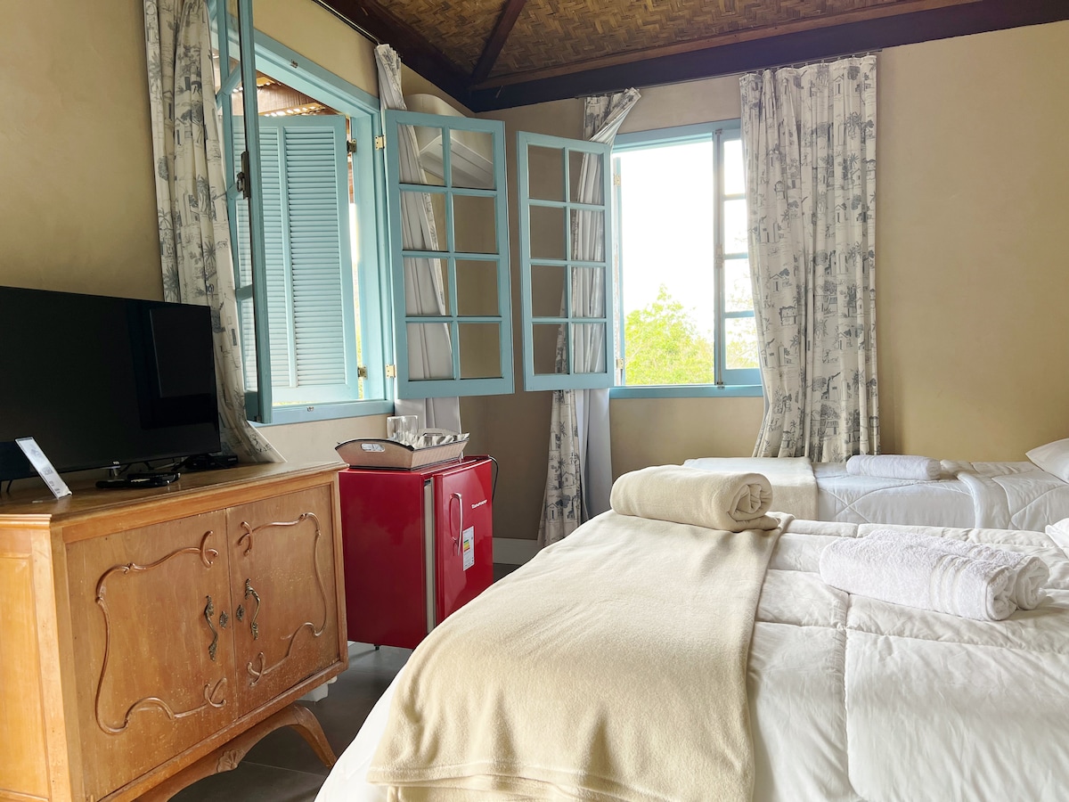Posto ideale per chi cerca tranquillità e riposo. Suite completamente privata. La vista dalla finestra sulle montagne e sullo sfondo l'Hotel Vila Relicário e il Parco Naturale Municipale delle Andorinhas.