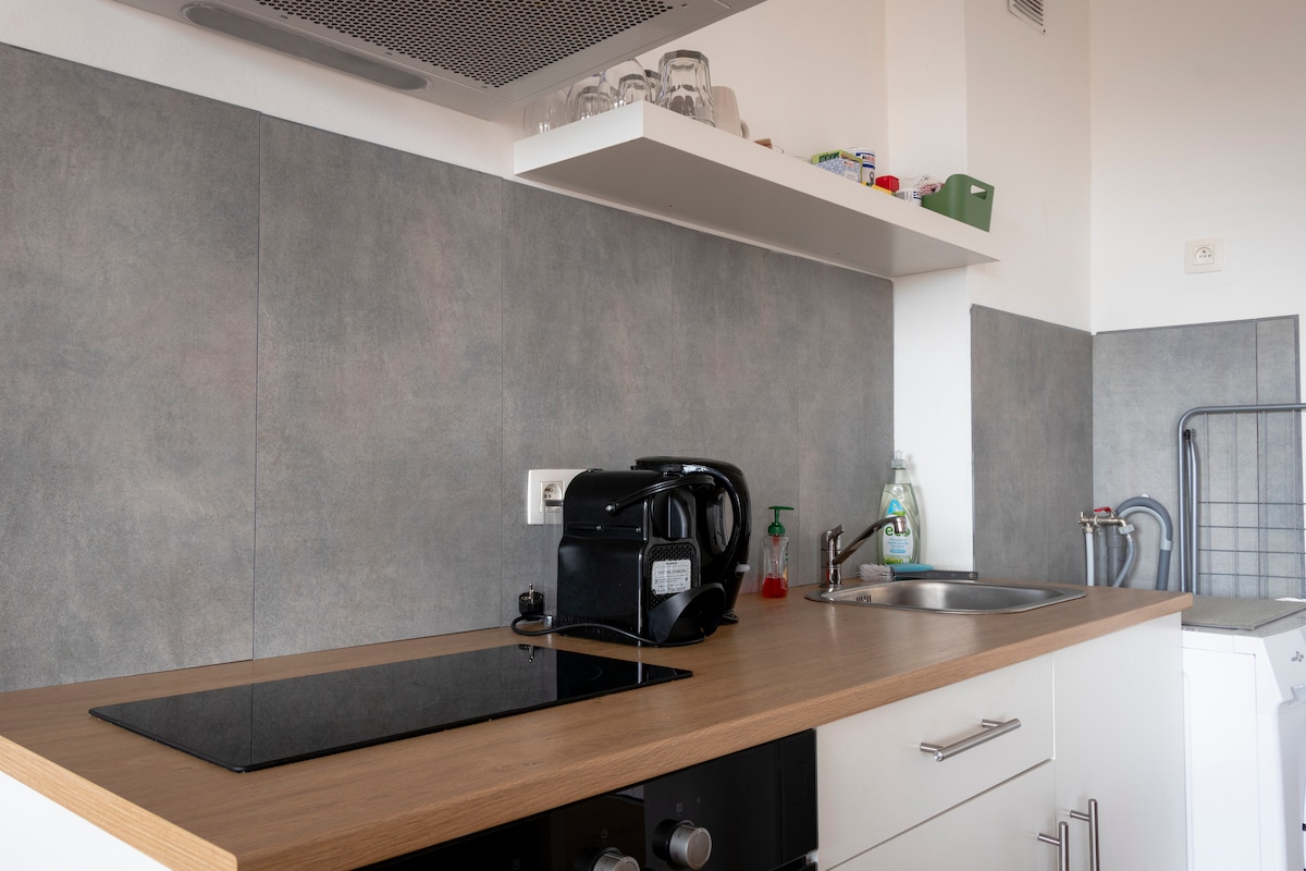 Rilassatevi in questo alloggio tranquillo ed elegante. Questo monolocale di 60 m2 situato al 3° piano di una nuova costruzione è dotato di una cucina attrezzata, doccia, sauna privata, balcone e WiFi in fibra A 10 minuti a piedi dal centro di Liegi, a 1 minuto dal Parc de la Boverie e dal suo Museo, a due passi dal centro commerciale "La Médiacité", molto vicino alla stazione di Guillemins e a tutti i servizi A seconda della disponibilità, è possibile effettuare il check-out tardivo con un supplemento di 15€/ora