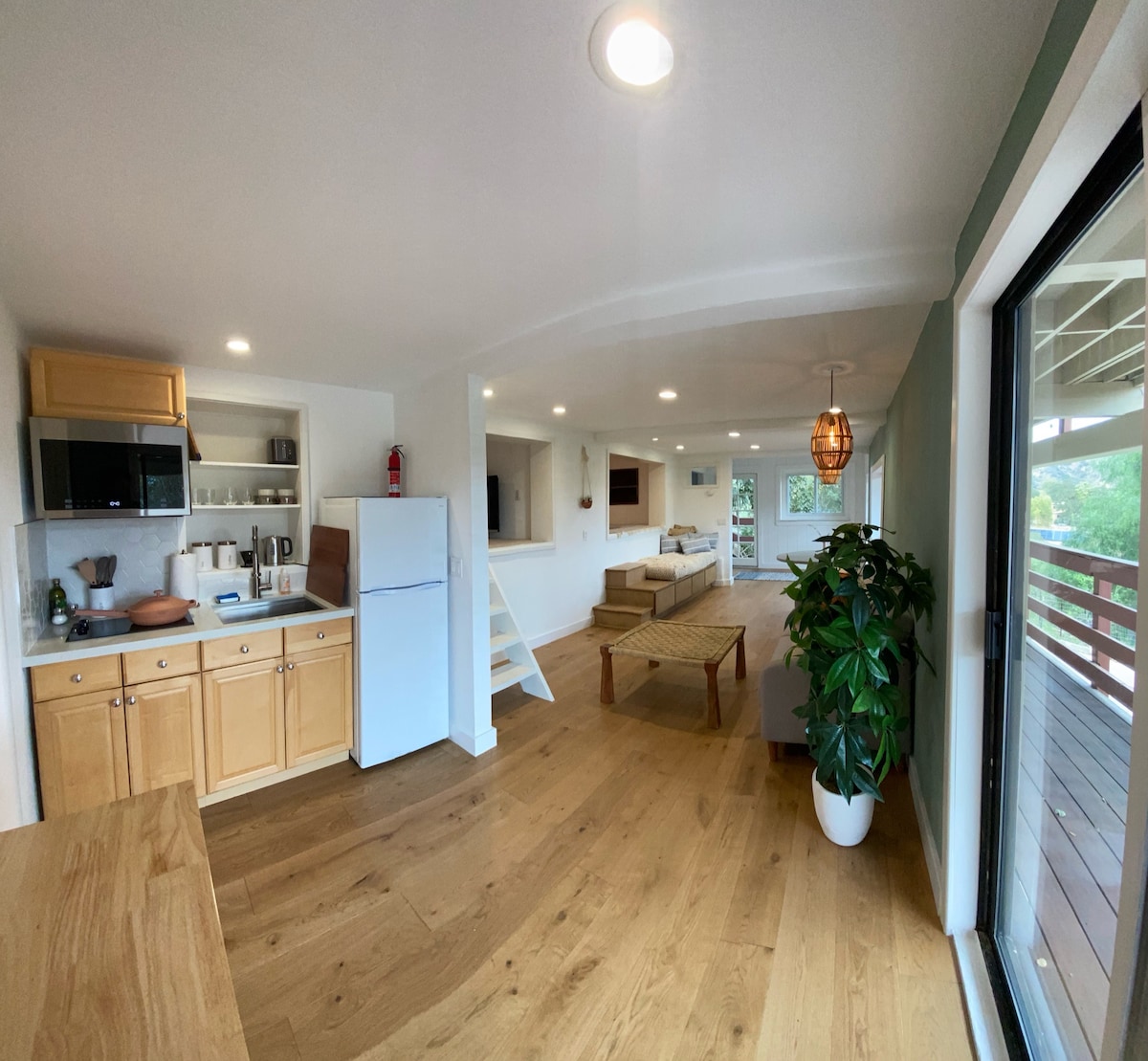 Nuovissima pensione privata indipendente con 1 camera da letto e una magnifica vista su Topanga. Ampia sala con grande cucina e enorme tavolo da pranzo. Una terrazza per gustare un caffè o un bicchiere di vino mentre ammiri il panorama favoloso. Ampio divano comodo per rilassarsi dopo una giornata intensa. L'accogliente camera da letto dispone di un comodo letto matrimoniale che ti permetterà di dormire tutto il sonno di cui hai bisogno. Il bagno è funzionale, funky e alla moda. Vieni a goderti la vita all'aria aperta e la vita cittadina di Los Angeles.