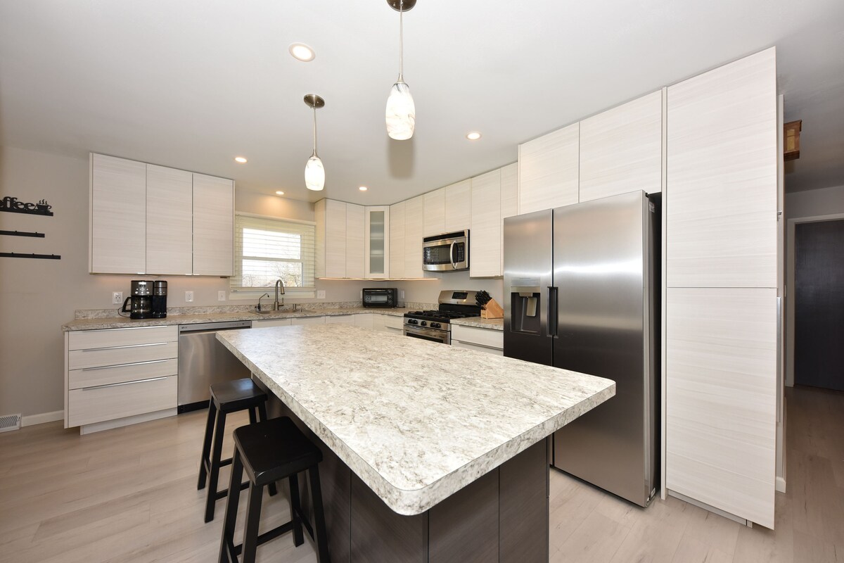 Escape to our stunning vacation home in Mequon, WI for a peaceful group getaway. Completely renovated and fully furnished, our home comfortably accommodates up to 8 guests. Enjoy complete privacy on our one-acre lot, and relax on the patio, grill up a delicious meal, or gather around the fire pit. Only blocks away from the Milwaukee River and minutes to downtown Mequon, our home offers easy access to nearby attractions. Book now for an unforgettable stay!