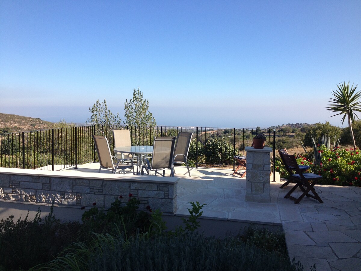Immergiti nella serenità! Rifugiati in un rifugio soleggiato su una tranquilla collina. Rilassati a bordo piscina, goditi il sole e goditi viste mozzafiato sul mare e tramonti dorati. A soli 15 minuti di auto da Paphos, i nostri due incantevoli monolocali sono la base perfetta da esplorare. Spiagge, sentieri naturali, porto, Laguna Blu e centro storico di Paphos sono tutti a 15-30 minuti di auto. Wi-Fi gratuito, parcheggio, una piazza del paese con taverne e un enoteca, a soli 4 minuti di auto. Auto indispensabile. Piscina aperta tutto l'anno (non riscaldata).