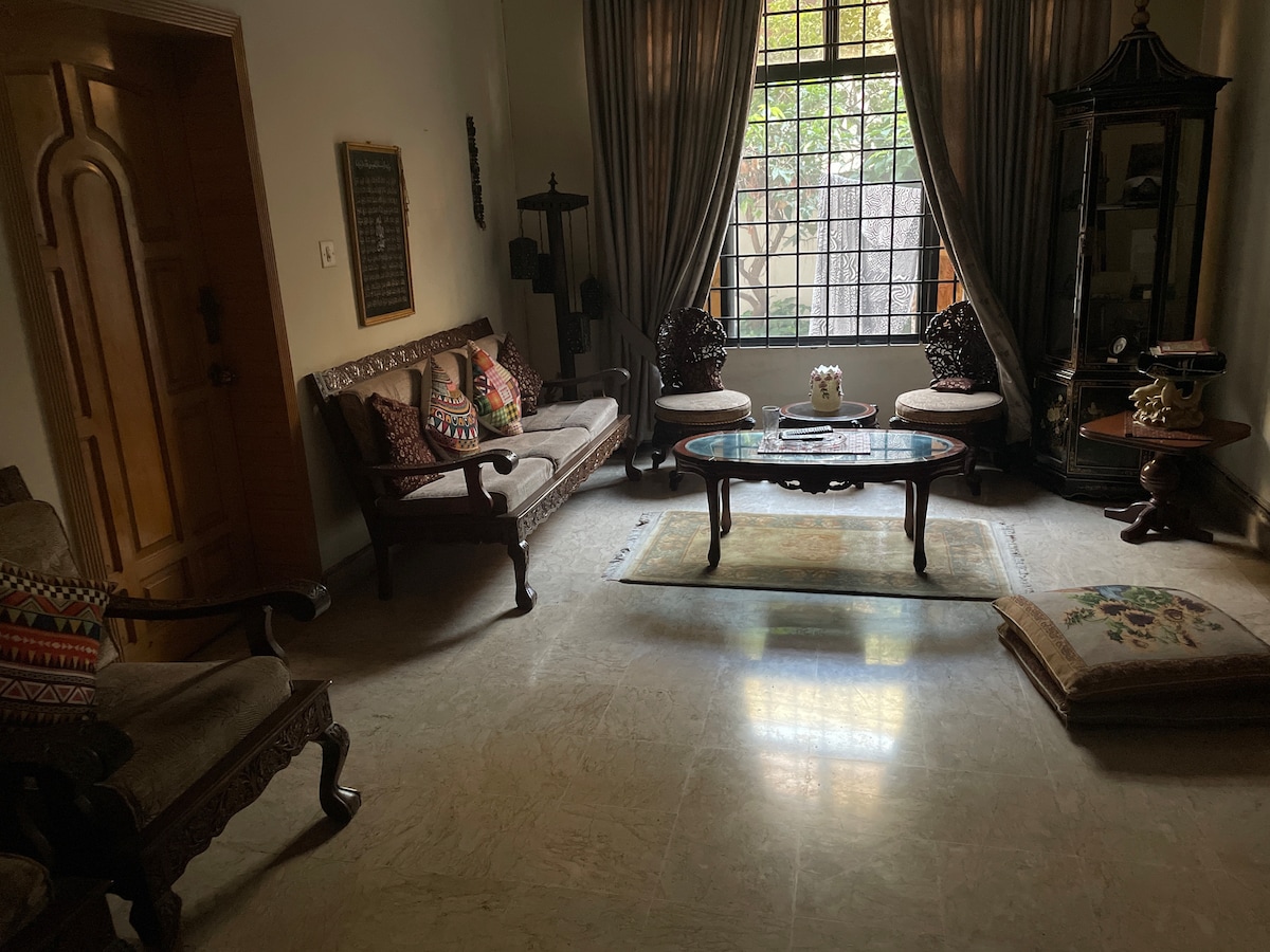 SOLO DONNE. Non ci sono coppie. Questo piccolo monolocale si trova in posizione centrale a Model Town, in una casa pre-partition. È separata dalla casa principale e ha il proprio bagno e un letto a soppalco. Verranno fornite strutture per preparare il tè e il caffè (le opzioni di consegna del cibo sono in abbondanza). Ideale per soggiorni a breve termine. L'accesso alla casa principale è limitato. Model Town Park è proprio dietro l'angolo ed è il luogo perfetto per una corsa serale.