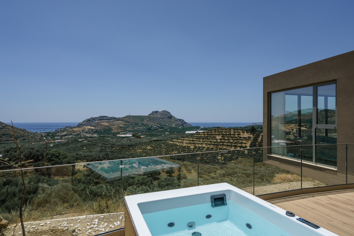 Villa Mayeia, premiata per il design e a soli 250 m dalla spiaggia di Plakias, unisce lusso minimalista e fascino bohémien, ospitando fino a 5 persone. Ogni camera da letto con bagno dispone di letti matrimoniali grandi, materassi premium e viste mozzafiato. Goditi una piscina privata riscaldata a pagamento, una zona pranzo all'aperto con barbecue e una veranda sul tetto con vista sul mare. Gli interni a pianta aperta includono una cucina completamente attrezzata, una Smart TV e servizi moderni. Perfetto per famiglie o amici.