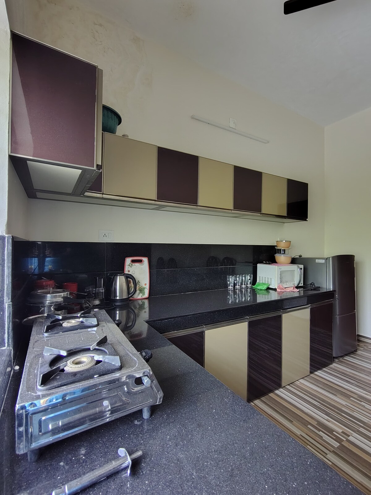 Ti diamo il benvenuto nella nostra rinomata residenza Airbnb "Ahlan" nella città costiera di Kasaragod. Questa elegante proprietà con 3 camere da letto e 3 bagni presenta un design contemporaneo, un parcheggio custodito e un tranquillo rifugio in giardino. Situata in posizione strategica vicino alla spiaggia e al centro città, offre la perfetta combinazione di comfort e accessibilità per una vacanza costiera davvero eccezionale.