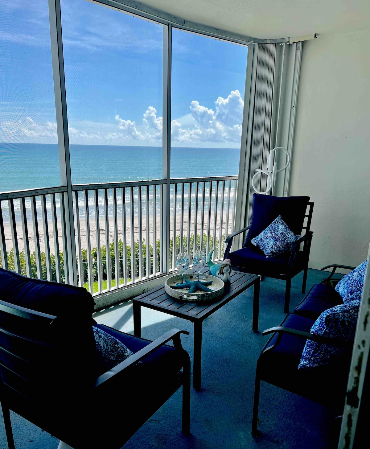 **PLEASE BE ADVISED RENOVATION WILL BE OCCURRING WEEKDAYS IN PARTS OF THE COMPLEX THROUGH FEB 2026** Beautiful sunrises from your brand new private balcony! Sip your morning coffee or evening cocktail while watching dolphins, sea turtles, or rockets. Renovated 2 story 2 bed 2 bath condo accommodates up to 6. Ideal for couple, family or close friends. Private beach and heated pool for your sun-soaking and cooling off pleasure. Don't forget your fishing pole!