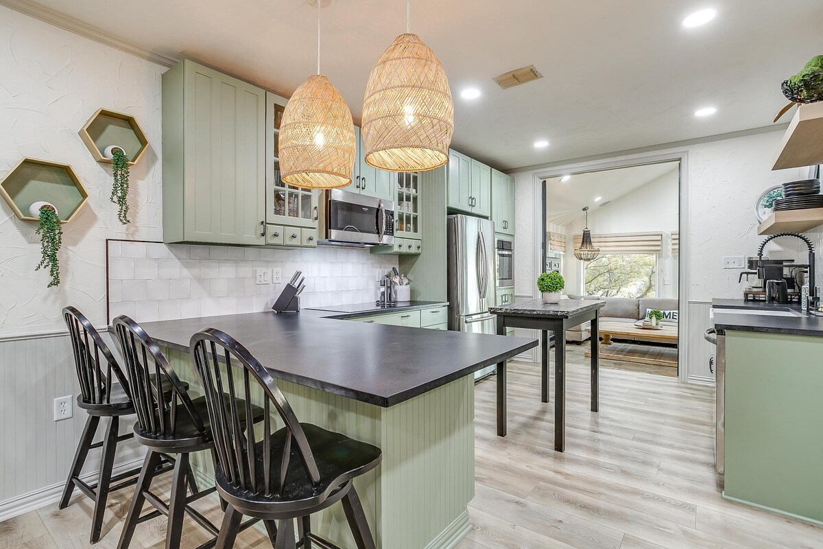 Rifugiati nel nostro Lake Haven, situato sull'idilliaco lago Palo Pinto, a solo un'ora dall'aeroporto DFW. Questa splendida proprietà fronte lago, ristrutturata con cura e distribuita su quasi mezzo acro, è la meta ideale per il weekend. Ogni dettaglio, dalle finiture agli arredi, trasuda il tocco di un designer. Con oltre 465 metri quadrati di spazio abitativo all'aperto, puoi goderti varie attività o semplicemente rilassarti mentre ammiri la vista mozzafiato sul lago.
