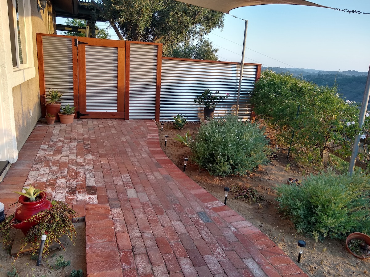 Goditi l'incantevole cornice di questo romantico e accogliente chalet in cima alla montagna. Un campo base pronto per le tue avventure a Palomar. Questa è una minicasa, 19' x 11' (la camera da letto è di 11x11 piedi). Capienza massima: 2 adulti e un bambino di età inferiore a 5 anni. Non c'è aria condizionata. La vista sulla valle è dalla proprietà accessibile agli ospiti, non direttamente dal portico della baita. Max 2 cani soggiornano gratuitamente - comunicare il loro arrivo. $100 di spese di pulizia per gatti in aggiunta alle nostre spese di pulizia di $50, e addebiteremo $200 se non comunichi il tuo gatto.