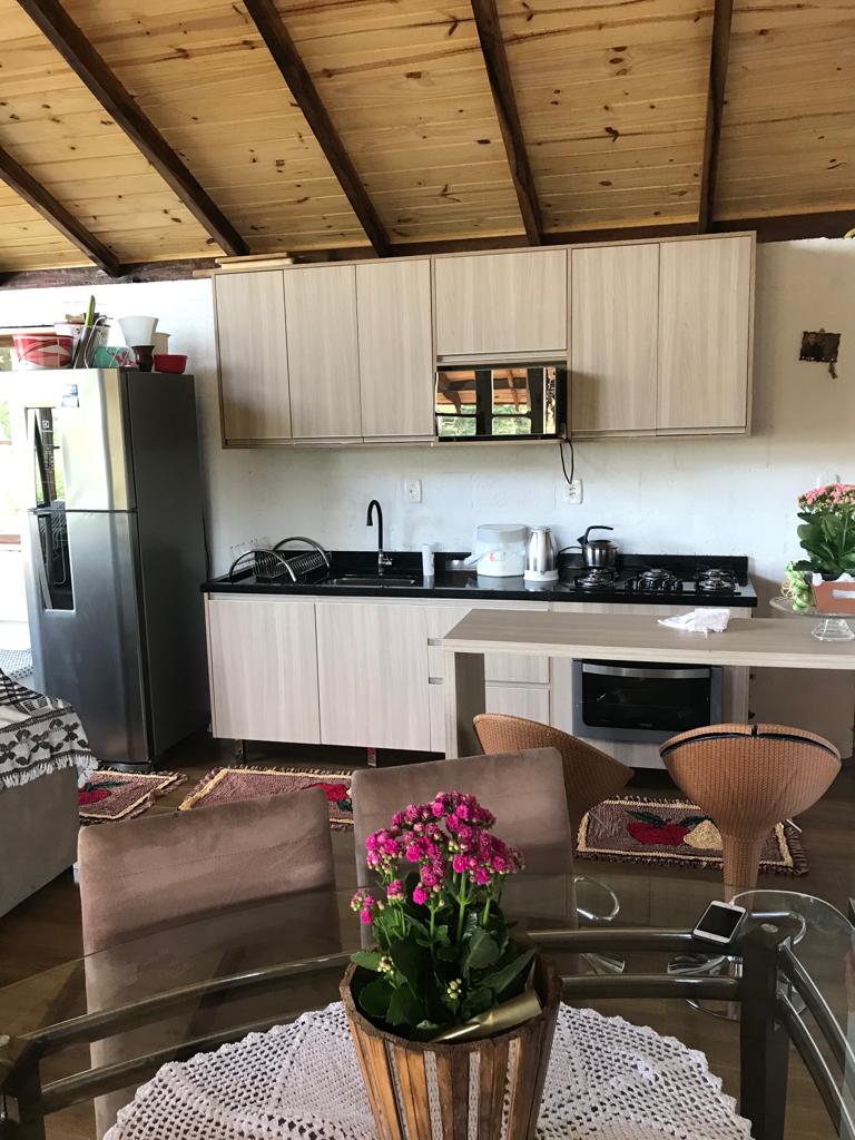 Casa com ampla área externa e vista privilegiada para o Rio Uruguai. O espaço interno é completo e aconchegante, contando com banheiro, cama de casal, sofá-cama, cozinha equipada, cervejeira, lareira, ar-condicionado, smart TV e Wi-Fi. Ao lado da casa, há um quiosque completo, com churrasqueira, bancada com pia, fogão a lenha, fogão a gás, geladeira, micro-ondas e banheiro, ideal para momentos de lazer e confraternização.
