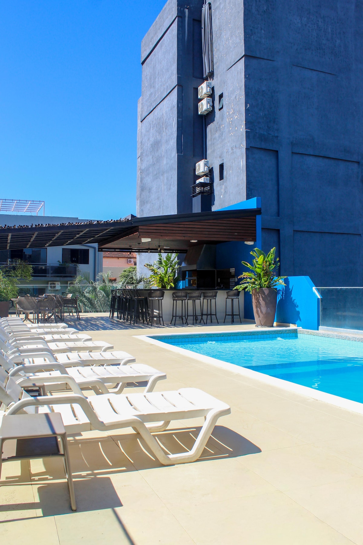 🏙️ Moderno studio detrás del Shopping del Sol, en el eje corporativo más importante de Asunción. 👔 Ideal para estadías ejecutivas o escapadas. 🛏️ Cama Queen Size Sueñolar (260mx200) 🌙 Cortinas estilo hotel blackout, donde no pasa la luz del día, ideales para las personas que trabajan de noche y descansan de día. 👩💻Acceso libre a la terraza, coworking y sala de reuniones del edificio. 🍽️ Cocina equipada 🍖 Quincho social con costo adicional, a coordinar con recepción. 🛡️ Seguridad 24 h.