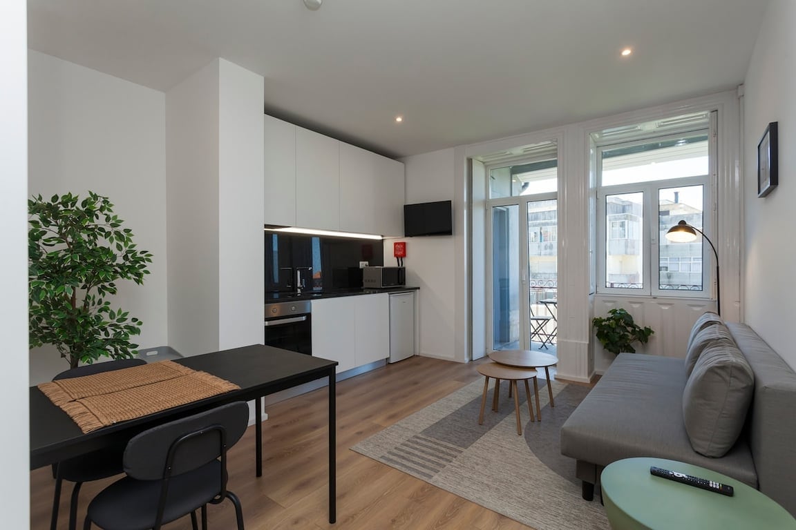 This cozy studio is located in central Porto, on a quiet street just steps from local cafés and restaurants. Situated on the 1st floor, without an elevator, of a traditional building, the apartment is thoughtfully decorated with a comfortable double bed, TV, Wi-Fi, and a small kitchenette equipped for preparing simple meals.There is a small veranda with a table and chairs.Close to the metro, with