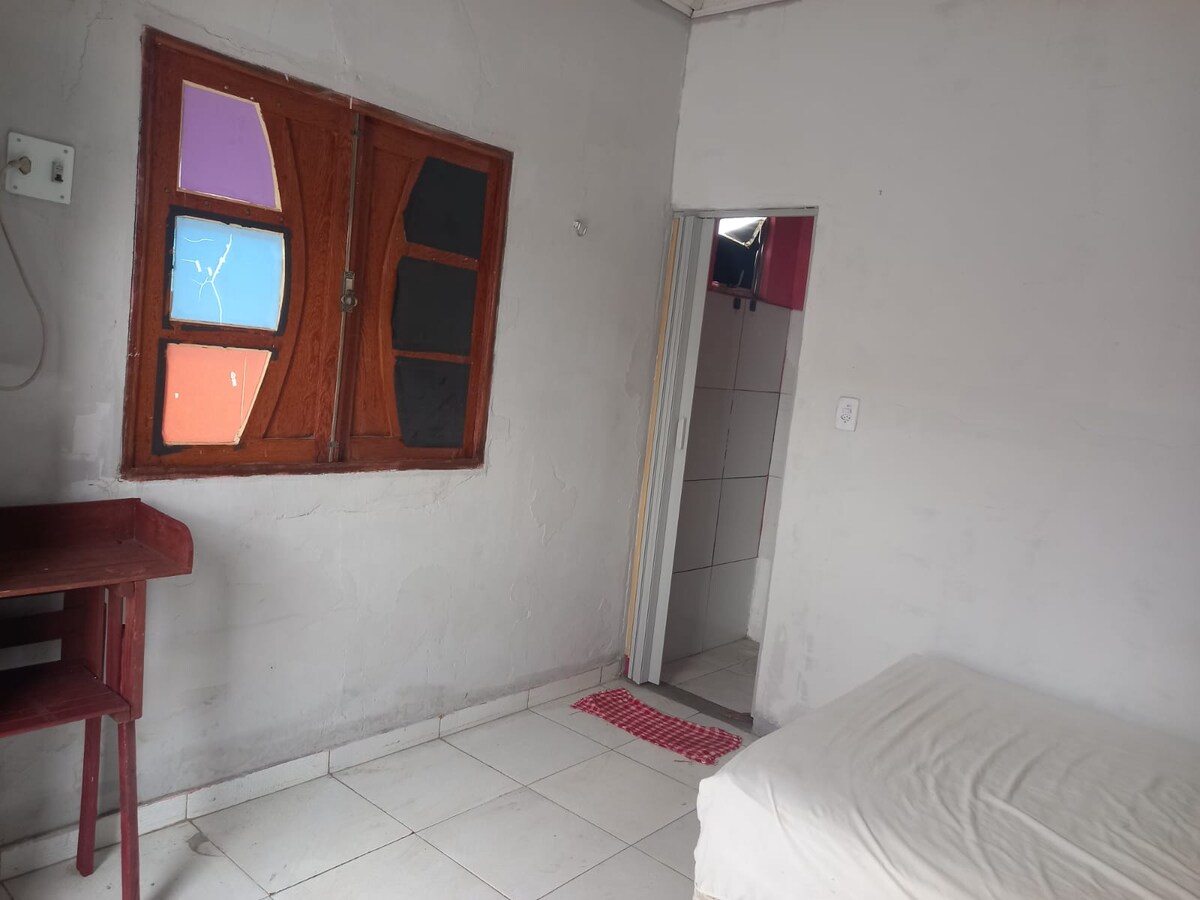 Temporada válida para as datas: 25, 26, 27, 28 e 29/06/2026. Bem-vindo à nossa aconchegante suíte com varanda, em frente ao Bumbódromo, perfeita para quem quer aproveitar a energia do Festival de Parintins! 1 suíte confortável, ideal para casais ou viajantes individuais com 1 banheiro privativo com chuveiro. Lençóis e toalhas fornecidos. Não oferecemos café da manhã.
