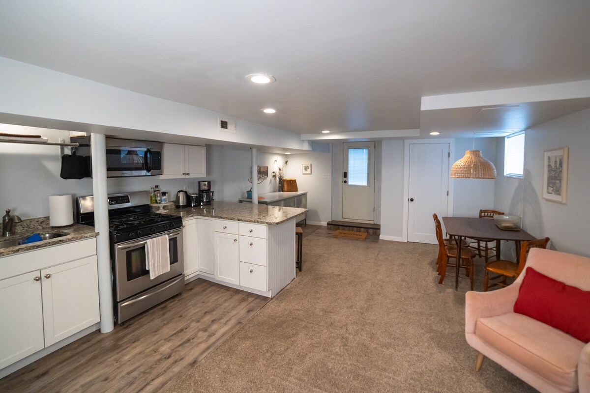 Benvenuti nel nostro appartamento creativo accogliente nel seminterrato. Questa pensione è stata recentemente ristrutturata con una mano di vernice fresca, nuovi mobili e nuove lenzuola. È ben illuminato e ha il suo ingresso privato. C'è una piccola zona patio proprio fuori dalla porta dove puoi gustare una tazza di caffè o tè al mattino. Ti auguriamo un piacevole soggiorno!