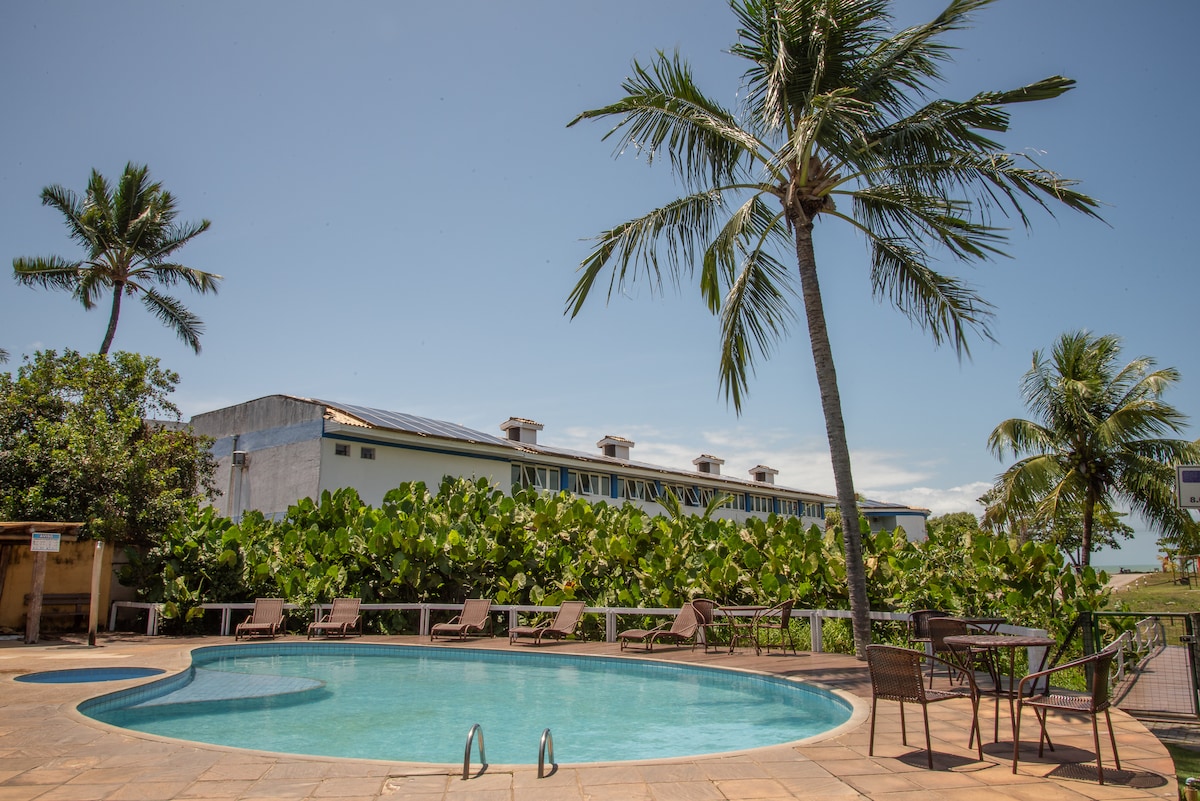 Bella casa, con 4 camere da letto, area privata, barbecue, aria condizionata e aiuto domestico. Situato in un condominio, che è calmo, tranquillo, sicuro e confortevole con una splendida vista sull'oceano e piscina e sauna in comune. Casa con 4 suite, con barbecue, birreria, cantina, aria condizionata split in tutte le camere, servizio di pulizia ogni giorno tranne la domenica e festivi inclusi. Il condominio è tranquillo, silenzioso, sicuro e sul lungomare (a pochi passi dalla spiaggia), con una piscina comune e una sauna.