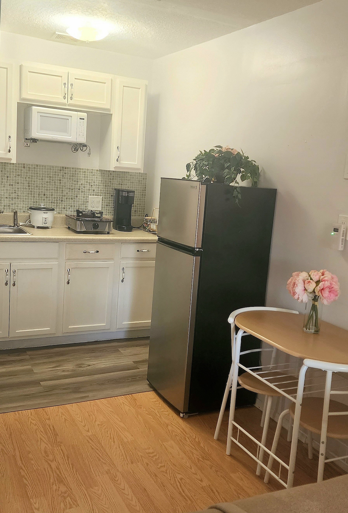 Rilassati e rinfrescati nel tuo ingresso privato, una suite dipinta di fresco, con bagno ristrutturato, 2025. Posto vialetto lastricato su una strada ben illuminata protetta da telecamere esterne. Entra dalla tua porta privata, rivolta verso il retro. Frulla nel tuo letto matrimoniale grande pulito e confortevole, progettato per due persone. WiFi gratuito, Smart TV, caffè, forno a microonde, mini frigorifero, congelatore e ghiaccio. Gli spazi esterni richiedono una richiesta anticipata con l'host e potrebbero essere necessari costi aggiuntivi. Materasso aggiuntivo disponibile su richiesta.