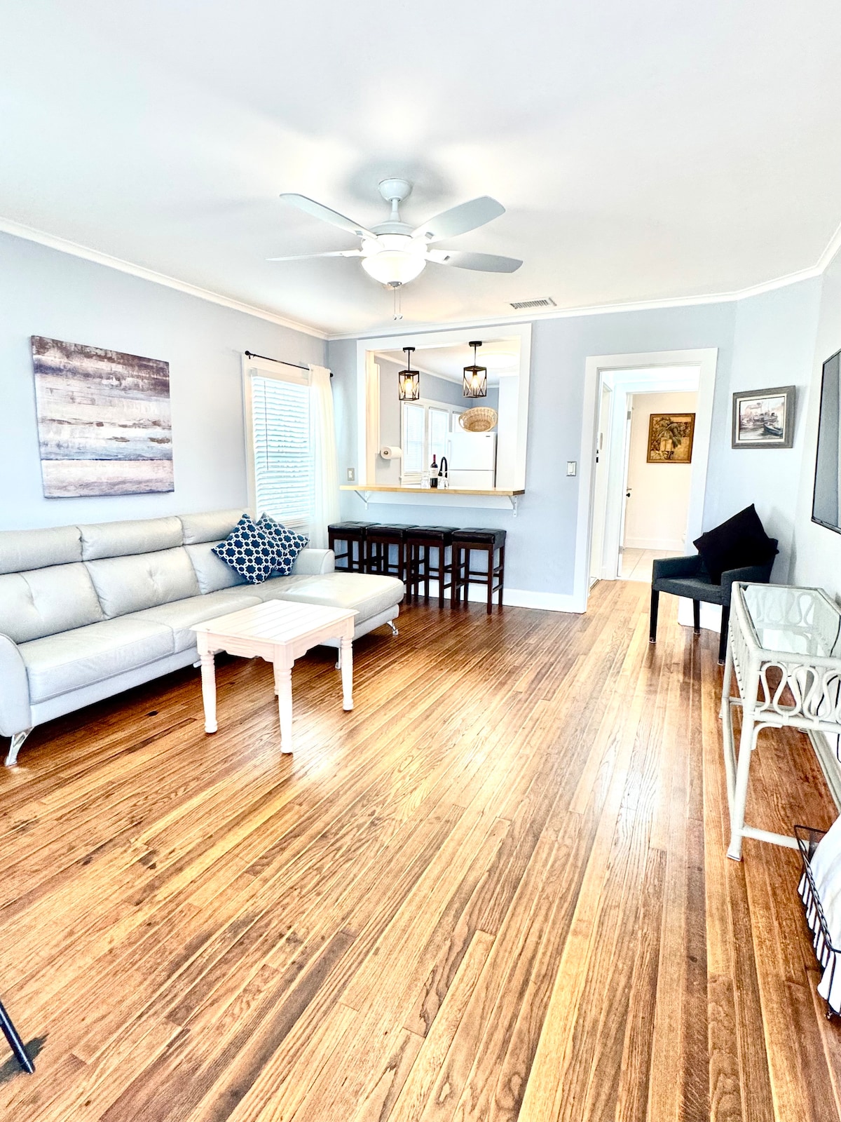 Welcome to your beach getaway! This cheerful, sun-soaked cottage is steps from the sand—or your next ice cream/seaside meal at a nearby restaurant. Perfect for couples or solo travelers, a comfy queen bed, a breezy living room, and a kitchen and dining area. Sip your morning drink on the upstairs porch as salty breezes drift by, or fire up the BBQ on the downstairs patio. Two bikes are yours to cruise the island like a local—Everything you need for a relaxing, joy-filled beach escape is here!
