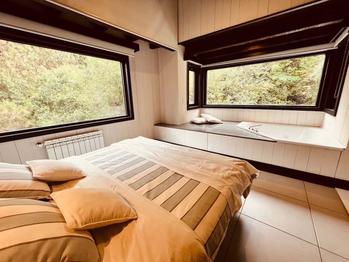 È un comodo cottage in montagna ma a 5 minuti dal centro della città in auto. Ideale per rilassarsi e godersi Ushuaia. Parcheggio privato, TV satellitare, wifi. Ha tutto il necessario per un soggiorno confortevole. Asciugacapelli, ferro da stiro, macchina per il caffè elettrica, cantina, pavé elettrico, tostapane, frigorifero, cucina con forno, estrattore. Inoltre, una griglia interna per chi ama cucinare alla brace.